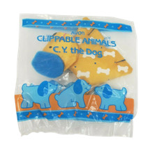 VINTAGE 1988 AVON CLIPPABLE ANIMALS C Y THE PUPPY DOG BLUE TOY NEW IN PACKAGE