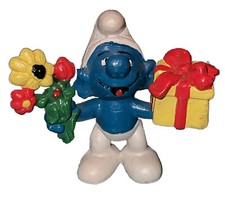 Smurf with Flowers and Gift Vintage Toy Figure Figurine PEYO Schleich