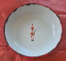 Vintage Sweden White Enamel Metal, Red Trim, Toy Soldier Bowl 6.5" Diameter