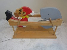 Vintage Carved Natural Wood Clown & Whale Swinging Roller Kid's Toy 11" Wide