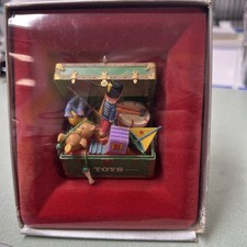 Rare Vintage 1985 Enesco Christmas Toy Chest Box Ornament Collection Toys