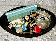 Vintage Junk Drawer Lot 30+ Smalls, Toy Train, Buttons, Trinket Tray, Dice +++