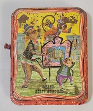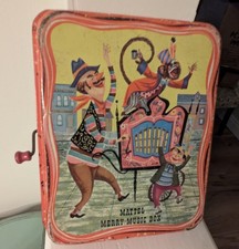 WORKING Vintage 1950s MATTEL tin wind-up MERRY MUSIC BOX great lithos #501