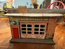 Vintage Wyandotte Tin Litho Toytown Fire Dept Building * Door Works Engine No 51