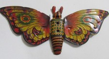 VINTAGE TOP OF TIN TOY BUTTERFLY, 9 1/4" w/ EMBOSSED WINGS THAT FLAP & FREE SHIP