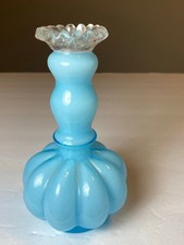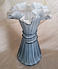 Fenton Art Glass Blue Opalescent Ruffled Lilly of the Valley Vase Handkerchief