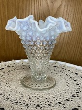 Fenton Art Glass Moonstone Vase French White Opalescent Hobnail Ruffled Vase