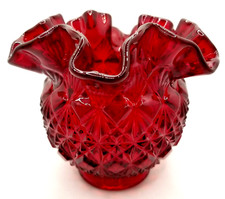 Fenton Art Glass Diamond Star Pattern Ruby Rose Bowl Vase Ruffled Top