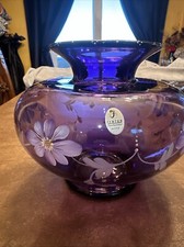 Fenton Art Glass Cobalt Blue Vase Floral Print Hand Painted by S. Bryan Stunning