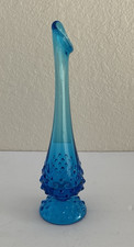 Vtg Fenton Blue Hobnail Swung Flower Vase 10" Art Glass MCM Retro Flower Footed