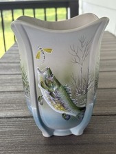 Fenton Art Glass OOAK Bass Fish Catching Dragon Fly Square Vase JK Spindler 2024