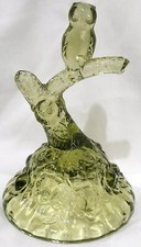 Fenton Art Glass OWL RING TREE branch Holder Figure colonial avocado green 9299