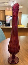 Vintage MCM Ruby Red Fenton Swung Vase 15’ Glass Pedestal
