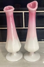 Vintage Pink Fenton Rosalene Bud Swung Vase Art Glass Set of 2