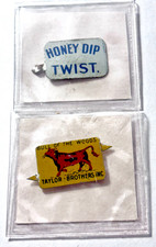 2 Antique Tobacco Tags Honey Dip Twist Bull of the Woods Taylor Brothers