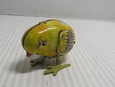 VINTAGE HOPPING CHICK YELLOW WIND UP LITHO 2" TIN TOY MADE IN JAPAN NO KEY
