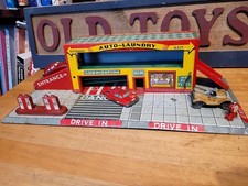 NICE VINTAGE 1950's TIN LITHO GAS STATION & AUTO LAUNDRY made in JAPAN W/ 3 CARS
