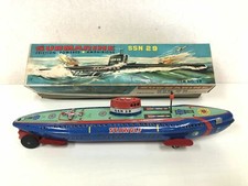 Y3972 TIN TOY Yonezawa Submarine watercraft box Japanese antique vintage