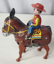 1960s Vintage toy Plodding donkey and Cowboy Yone 2090 Japan 5"