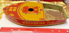 OLD VINTAGE TOY TIN LITHO METAL WOLVERINE YELLOW & RED TUG BOAT SANDEE