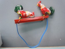Vintage Tin Litho Hand Pressure Mechanical Toy Pecking Feeding Chicken Roosters