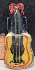 VINTAGE GUITAR SHAPED TOY TIN METAL CLICKER MADE IN JAPAN