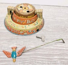 Happy Birtday Cake Tin Toy 1950s Vintage Bird & Key Parts or Repair