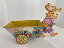 Vintage J. Chein Tin Litho Easter Bunny Rabbit Toy Pulling Wagon Cart