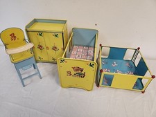 VTG J Chein Tin Litho Doll Furniture-1950's High Chair- Crib - Wardrobe Playpen