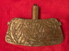 Antique Copper Powder Flask w/ Leaf Motif 5.25 x 4 x 1