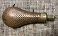 Antique Ornate Copper & Brass Gun Powder Flask Nice!