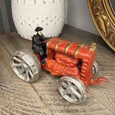 Vintage Red Cast Iron FORDSON TRACTOR Toy, Hand Crank Style, About 6"