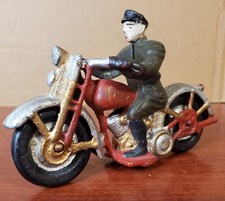 Vintage Cast Iron Police Patrol Motorcycle 70’s Toy Hand Painted Cast Iron Art