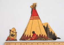 Vintage 1930s Cardboard Stand Up Die Cut Litho Game Pieces Indians Teepee
