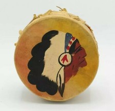 Vintage 1940's Era Native American Beautiful Hand Painted Chief Animal Hide Drum