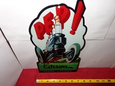 VINTAGE EDISON SPARK PLUGS +OLD PLUG CAR 12" METAL GASOLINE OIL ADVERTISING SIGN