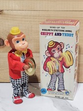 Vintage ALPS Chippy w Cymbals Wind Up Litho Tin Toy Japan w Box Works! See Video