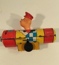 Vintage Yone Japanese Tin Wind Up Circus Plane No. CP-007 Clown Pilot Works