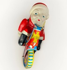 Vintage Japanese Tin Toy – Santa on Bicycle – Dangling Arms - Christmas - Works
