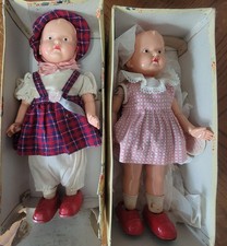 2 Vintage 1950's Japanese Tin Toy Wind Up Walking Dolls Masudaya KEY & BOXES TAG