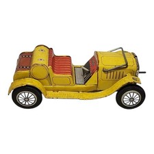 Vintage Tin Metal Wind Up Car Roadster Yellow Made in Japan Does Not Work