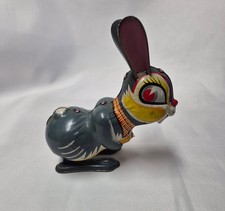 Working Vintage Wind-Up Hopping Bunny Rabbit Tin Lithograph Toy Japan