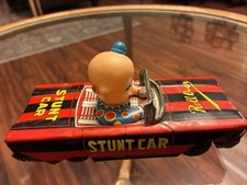 Vintage Japanese Tin Toy BUMP CAR Pop-Up Clown Wind-Up Showa Era