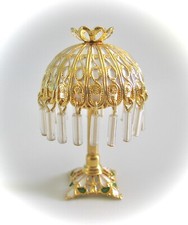 Dollhouse Miniature LED Battery Tiffany Shade Gold Base Table Lamp Tested 2" H