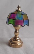 Dollhouse Miniature Tiffany Style Table Lamp Gold Base Multi-Color Stained Glass