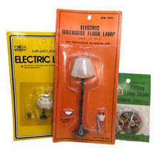 7 Lot Various Doll House Miniature Electric Plug in Lamps Untested 4 NOS Tiffany