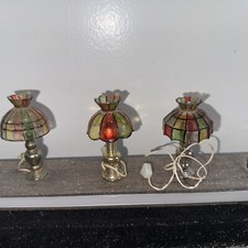 Lot of Miniature Doll House Furniture Brass Tiffany Lamp, Desk Lamp Table Lamp.