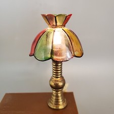 DOLLHOUSE MINIATURES 2 1/2" Tiffany Lamp w/ 14" Cord Brasstone Base Vintage (A1)