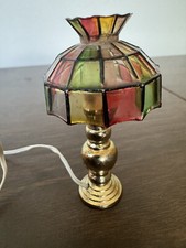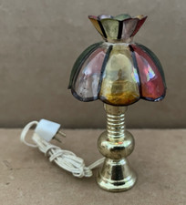 Vintage Miniature Dollhouse Tiffany Style Electric Lamp Faux Stained Glass Shade