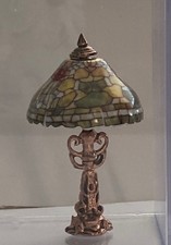Vintage Dollhouse Table Lamp Tiffany Style 1:12 Miniature Bronze Painted Pewter